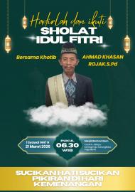 Bertindak sebagai Imam sekaligus Khatib pada pelaksanaan Sholat Id tahun ini adalah Bapak Ahmad Khasan Rojak, S.Pd. Dalam khotbahnya, beliau menekankan pentingnya menjaga nilai-nilai Ramadan dalam kehidupan sehari-hari, sesuai dengan tema besar yang diusung yakni "Sucikan Hati, Sucikan Pikiran di Hari Kemenangan".