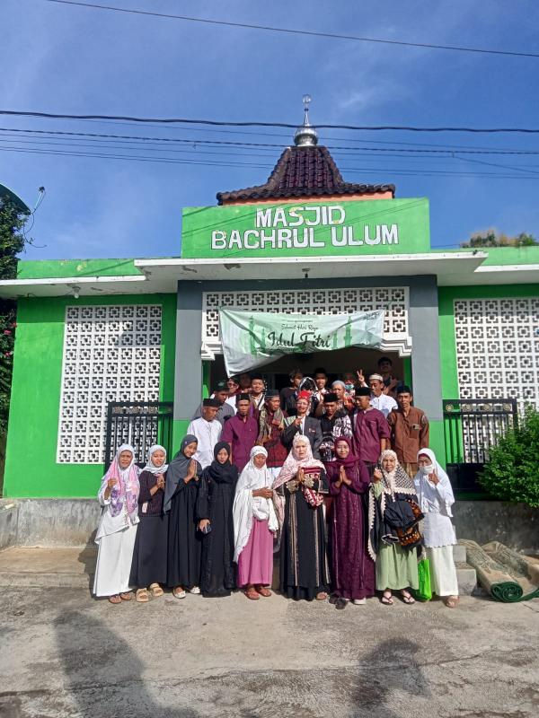 Usai pelaksanaan sholat dan doa bersama, suasana kekeluargaan tampak sangat kental di halaman Masjid Bachrul Ulum. Warga lintas generasi—mulai dari tokoh masyarakat, bapak-bapak, ibu-ibu, hingga pemuda dan anak-anak—berkumpul bersama untuk saling bertegur sapa dan memohon maaf.