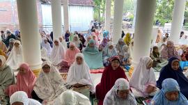 Kehadiran jamaah yang melimpah hingga ke halaman dan jalan masjid menunjukkan antusiasme tinggi masyarakat dalam merayakan Idul Fitri tahun ini dengan penuh kebersamaan.