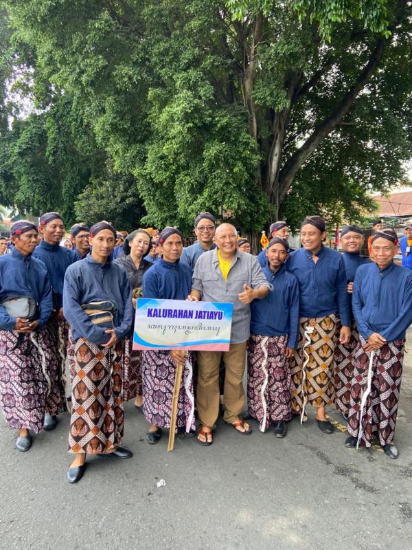 Sesuai instruksi teknis, delegasi pria dari Jatiayu tampil gagah mengenakan Busana Kejawen Pranakan Jangkep. Khusus untuk Lurah Jatiayu, penampilan dilengkapi dengan penyematan keris sebagai simbol kepemimpinan dan kewibawaan. Sementara itu, para perangkat desa perempuan tampil anggun dengan Kebaya Tangkeban dan sanggul yang tertata rapi sesuai juknis.